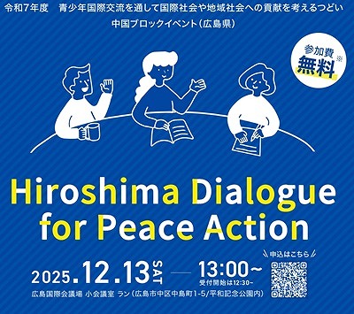 広島県では、「青少年国際交流を通して国際社会や地域社会への貢献を考えるつどい」を12月13日に開催することが明らかになった。