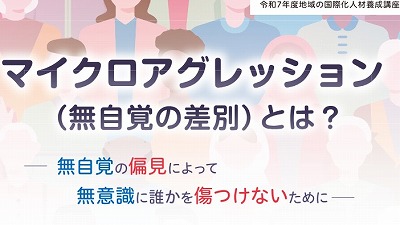 大阪府の公益財団法人の大阪国際交流センターでは、地域の国際化人材養成講座「マイクロアグレッション(無自覚の差別)とは?~無自覚の偏見によって無意識に誰かを傷つけないために~」を12月21日に開催する。