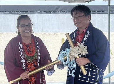 大使館によると、この引渡し式典には、マーシャル諸島共和国からは、ヒルダ・C・ハイネ大統領、ザッキオス外務貿易大臣代行などの政府関係者が参加した。日本からは、JICAマーシャル事務所駐在代表、ヤチヨエンジニアリング株式会社、大日本建設株式会社などの関係者が参加した。