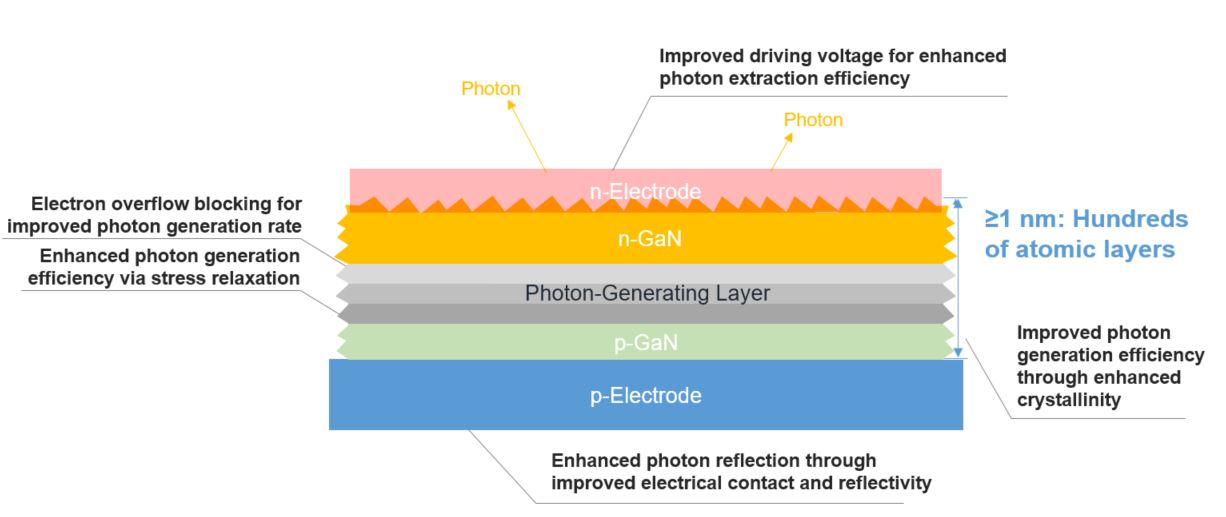 ソウル・バイオシスは長年にわたり営業損失を計上する中でも、「光の新たな歴史を創る」というビジョンのもと、Micro LED分野に年間数千万ドル規模の投資を継続し、技術競争力を着実に強化してきました。同社は、ノーベル物理学賞受賞者の中村修二氏およびスティーブン・デンバース教授率いるカリフォルニア大学サンタバーバラ校(UCSB)の研究チームと20年以上にわたり共同研究を行い、2021年には1µm級の超小型デバイスの開発を完了しています。